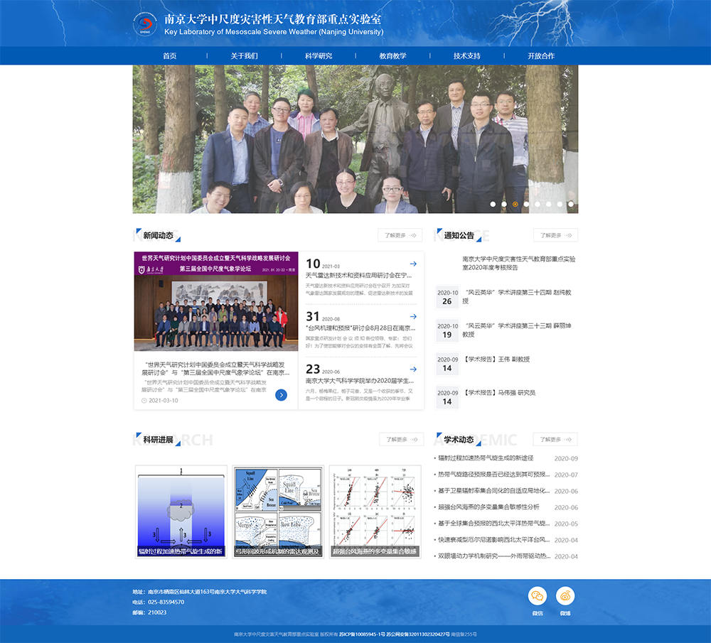 南京大學(xué)中尺度災(zāi)害性天氣教育部重點實驗室具有雄厚的中尺度氣象學(xué)研究基礎(chǔ),是我國最早專門從事中尺度災(zāi)害性天氣研究的機構(gòu)之一。實驗室前身為中尺度災(zāi)害性天氣國家專業(yè)實驗室,于1991年由教育部(原國家教育委員會)利用世界銀行貸款投資45萬美元,南京大學(xué)配套投資81萬元人民幣建成。1996年6月通過教育部(委托南京大學(xué))驗收,開始對外開放。2000年被國家教育部遴選為教育部重點實驗室。2004年,實驗室搬遷至南京大學(xué)蒙民偉樓23樓,環(huán)境和硬件條件進一步改善,同年順利通過第一次教育部重點實驗室評估。此后,通過國家985工程二期、211工程二期,先后投入了人民幣980萬元和160萬元,對實驗室的基礎(chǔ)設(shè)施和實驗設(shè)備進行了進一步建設(shè)。2009年11月,再次順利通過教育部的評估。2014年實驗室變遷至南京大學(xué)仙林校區(qū)的大氣院樓,建立了災(zāi)害性天氣移動觀測平臺。2016年第三次順利通過教育部的評估。目前,實驗室已成為我國專門從事中尺度災(zāi)害性天氣研究和高層次人才培養(yǎng)的重要基地之一,在國內(nèi)外大氣科學(xué)界享有盛譽。